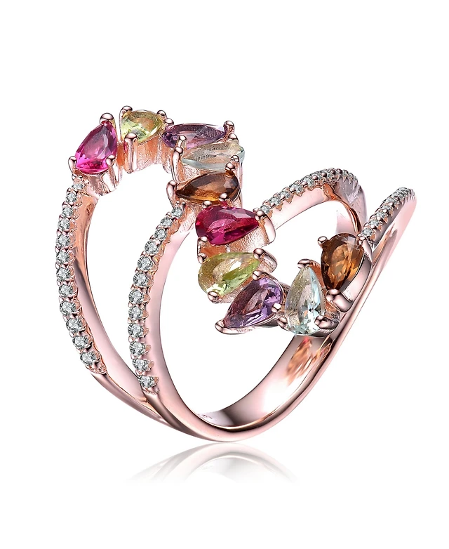 Genevive 18K Rose Gold Plated Red Cubic Zirconia Accent Ring