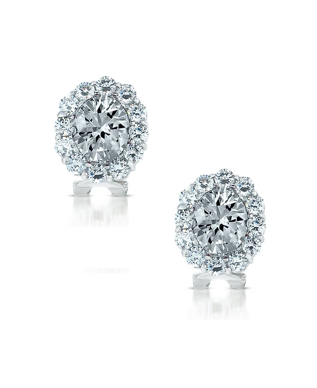 Sterling Silver Cubic Zirconia Vintage Cushion Cluster Halo Stud Earrings