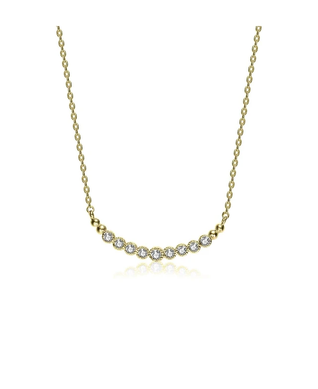 Gorgeous Sterling Silver 14K Gold Plated with Round Cubic Zirconia's Curved Bar Necklace