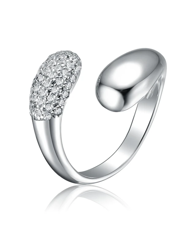 Sterling Silver 14K Gold Plated and 2-Row of Cubic Zirconia Modern Ring