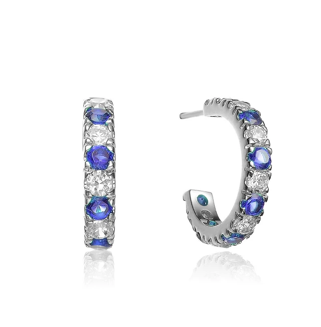 Chic Sterling Silver Cubic Zirconia Encrusted Thin Hoop Earrings