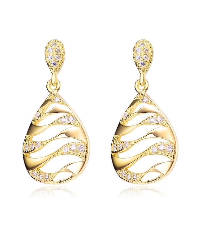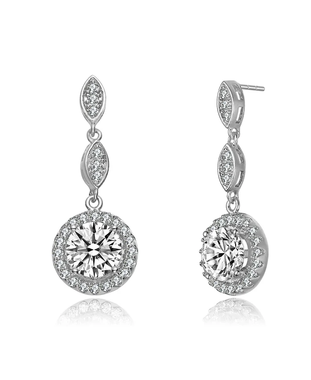 Genevive Sterling Silver White Gold Plating Cubic Zirconia Leverback Drop Earrings