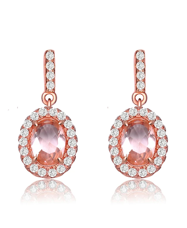 18K Rose Gold And White Gold Plated Elegant Sterling Silver Two-Tone Oval Earring