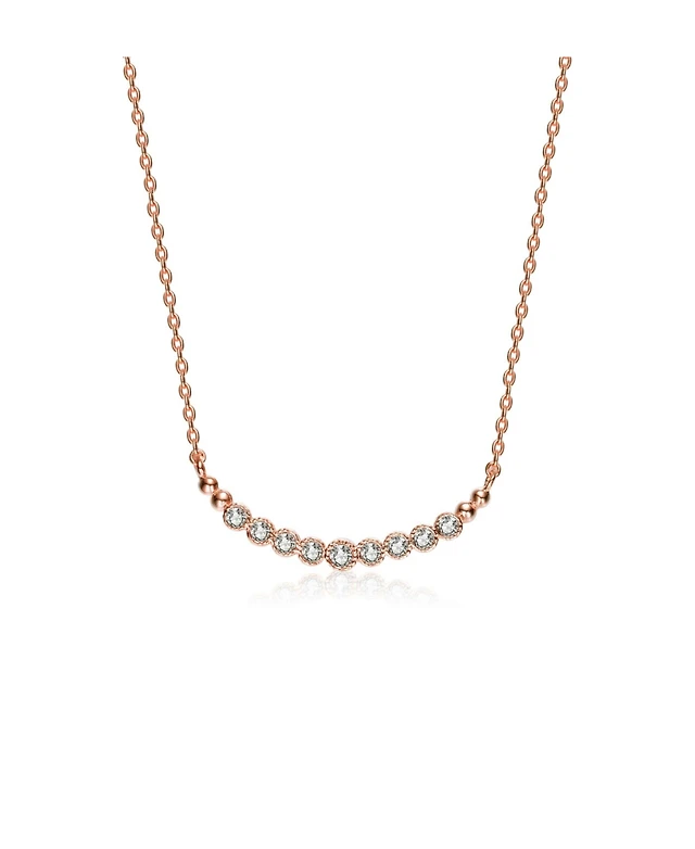 Gorgeous Sterling Silver 14K Gold Plated with Round Cubic Zirconia's Curved Bar Necklace