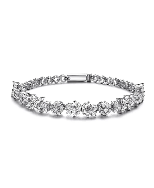 Sterling Silver White Gold Plated Cubic Zirconia Cluster Tennis Bracelet