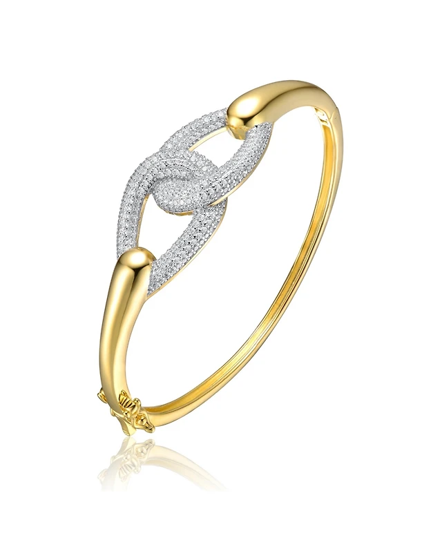 Sterling Silver with Cubic Zirconia French Pave Heart Halo Cuff Bracelet