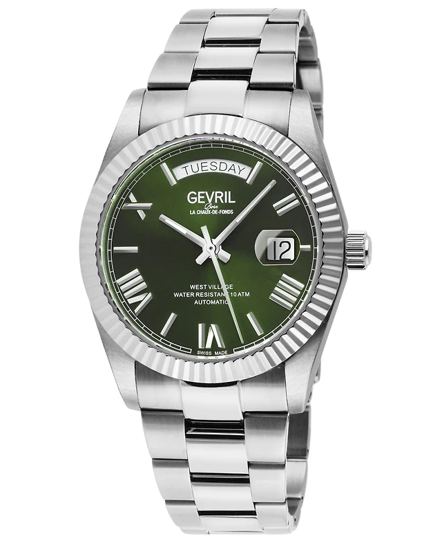 Gevril Men's West Village Swiss Automatic Silver-Tone Stainless Steel Watch 40mm