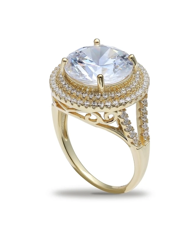 Cubic Zirconia Double Pave Halo Ring (7-1/2 ct. t.w.) 18K Gold Plated Sterling Silver