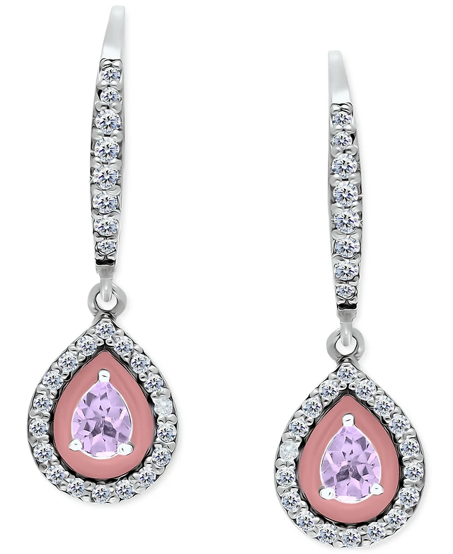 Giani Bernini Amethyst (1/4 ct. t.w.), Cubic Zirconia, & Enamel Circle Dangle Hoop Earrings Sterling Silver (Also Additional Stones), Created fo