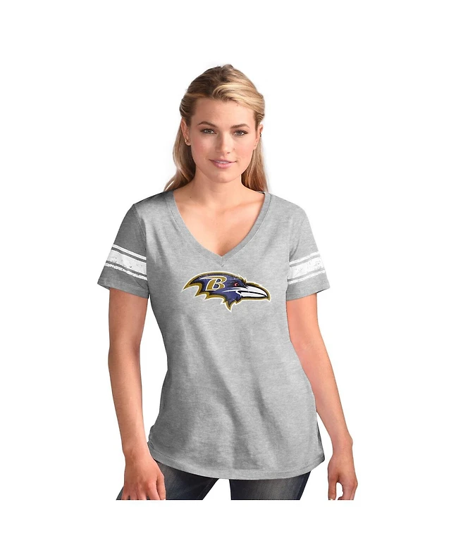 G-iii 4Her by Carl Banks Women's Heather Gray Baltimore Ravens First Pick Distressed V-Neck T-Shirt