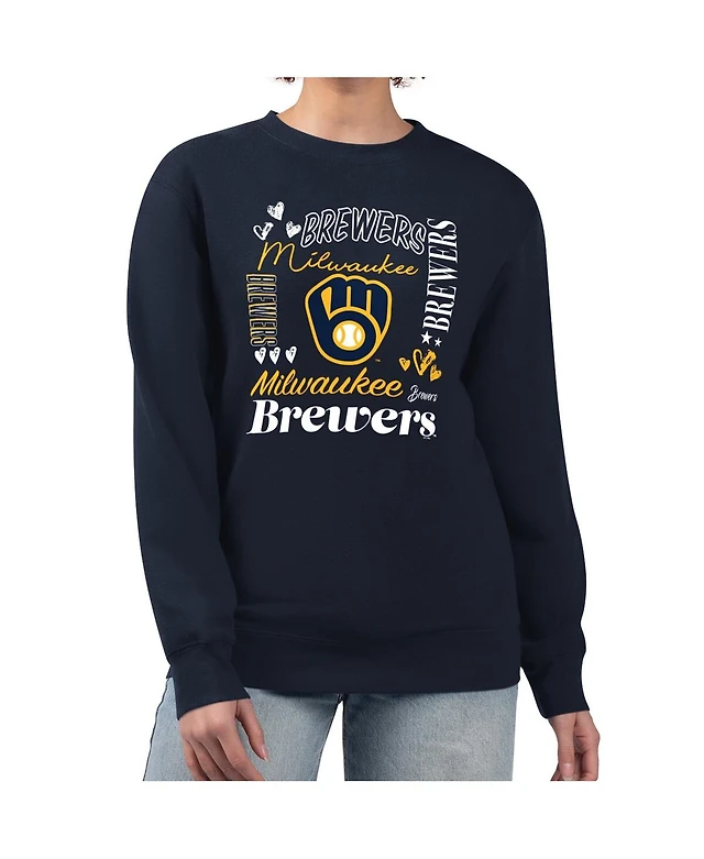 G-iii 4Her by Carl Banks Women's Navy Milwaukee Brewers Collage Team Graphic Fleece Pullover Hoodie
