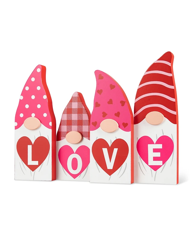 Glitzhome 4" H Valentine's Wooden Block Table Decor, Set of 4