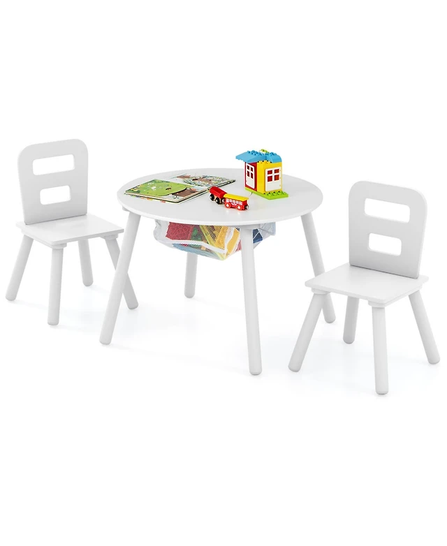 Wood Activity Kids Table and Chair Set with Center Mesh Storage