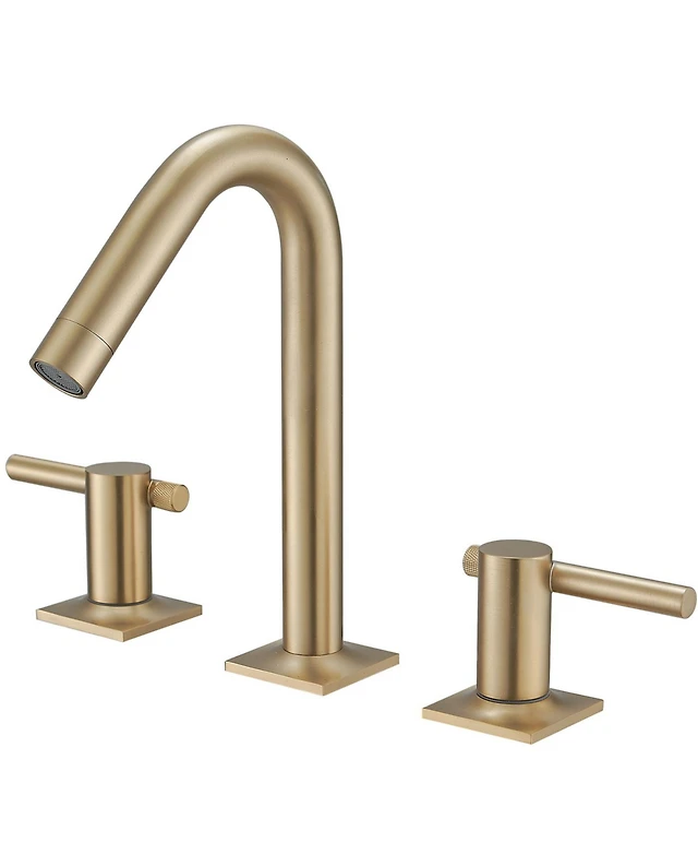 8 in. Widespread Double Handle Black Bathroom Faucet Set 3-Holes Vanity Sink With Metal Drain In Brushed Gold