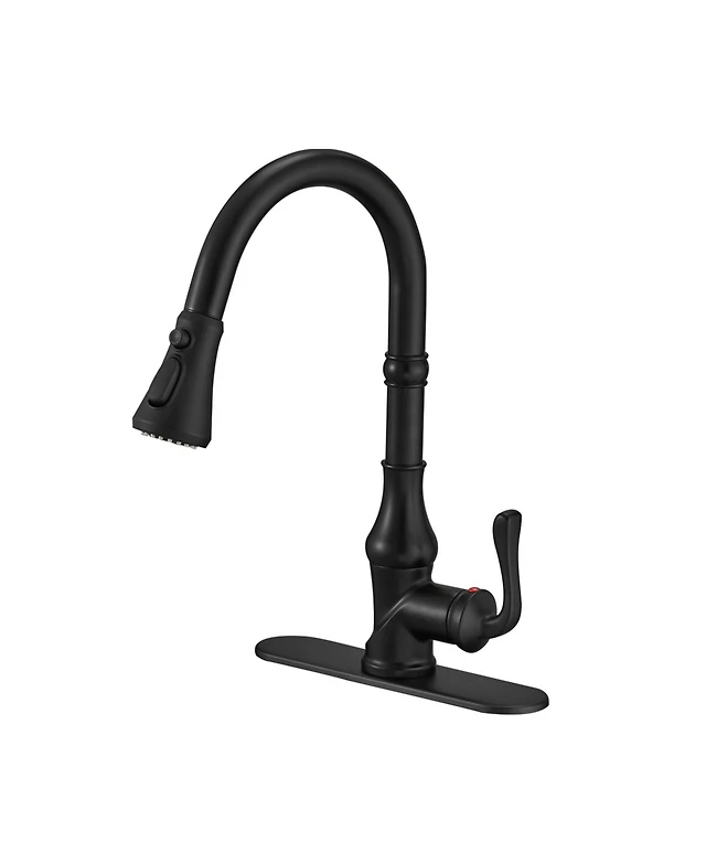 Commercial Pull Down Kitchen Sink Faucet With Sprayer Modern Single Handle Brass Taps Matte Black