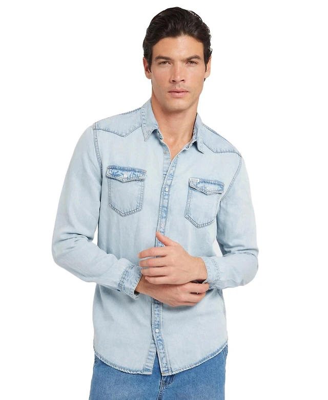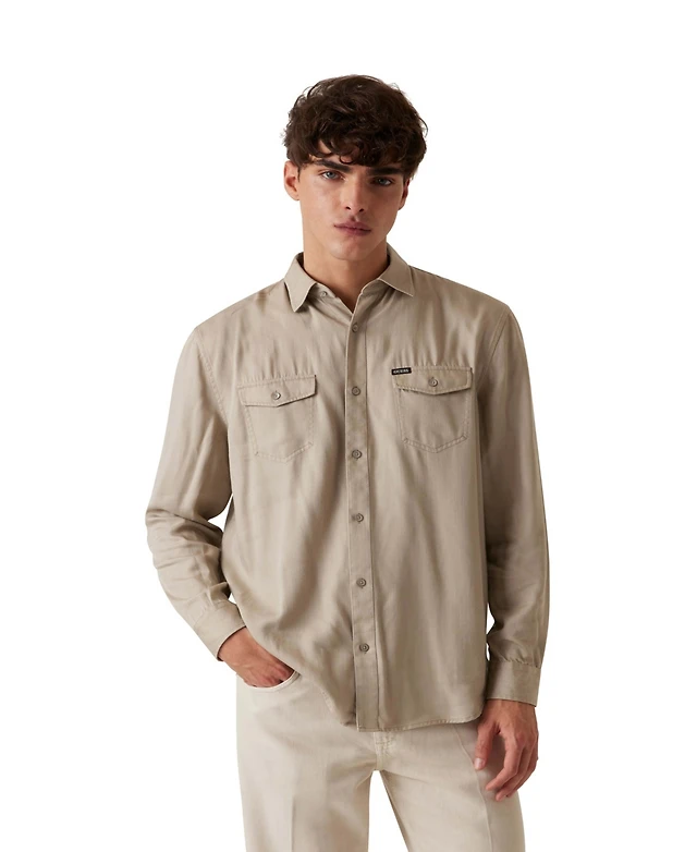 Guess Short Sleeve Geometric Border Charm Button-Front Shirt