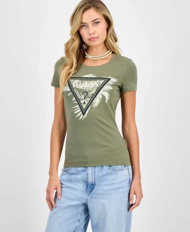 Guess Women's Embellished Triangle Short Sleeve T-Shirt