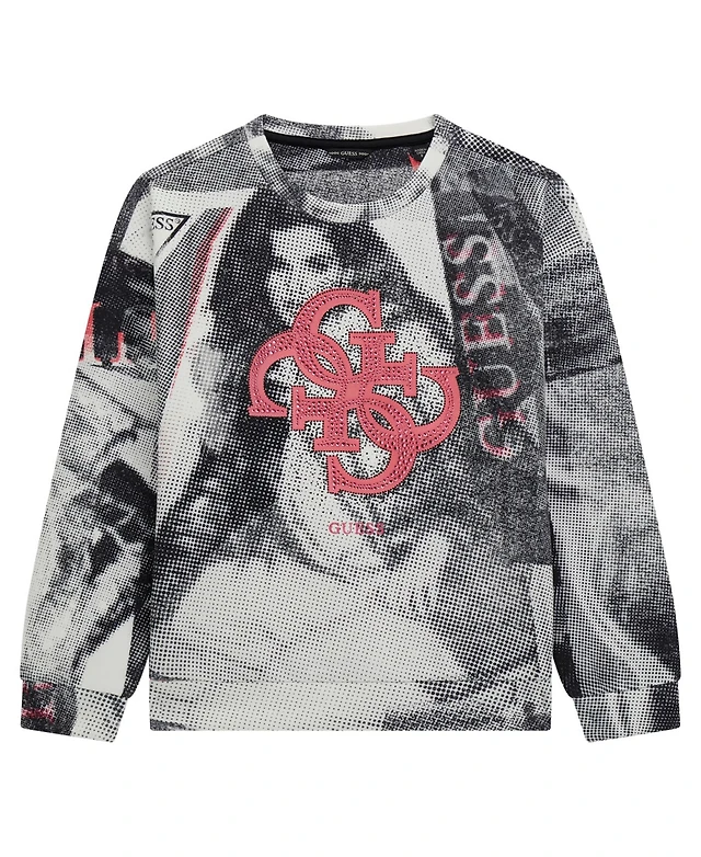 Guess Men's Long Sleeve Tonal Peony Jacquard Crew Shirt