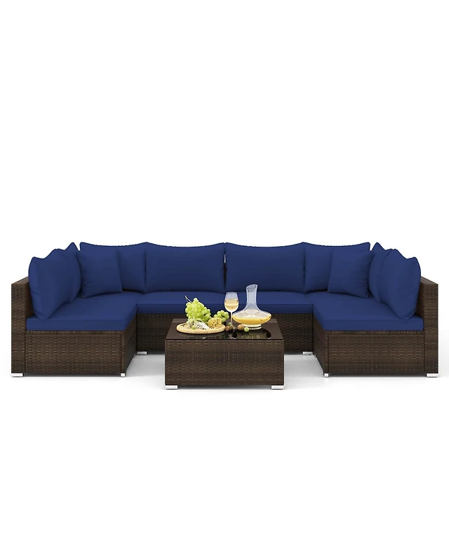 Gymax 7PCS Rattan Patio Sectional Sofa Set Conversation Set w/ White Cushions