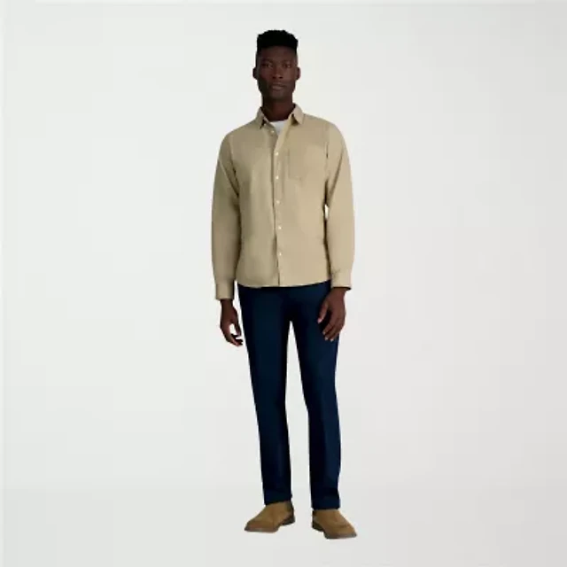 Haggar Wrinkle Free Performance Khaki Mens Comfort Waistband Straight Fit Flat Front Pant