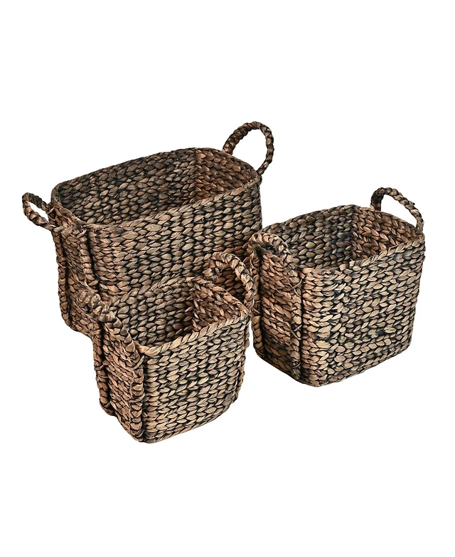 Happimess Quinn Bohemian Cottage Woven Hyacinth Rectangular Storage Baskets with Handles, Set of 3