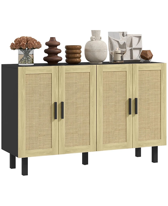 Homcom Industrial Style 4-Door Cabinet Pantry Cupboard with Storage Shelves for Bedroom and Living Room, White