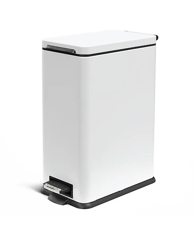 Home Zone Living 12 Gallon Slim Stainless Steel Kitchen Trash Can with Step Pedal and Soft Close Lid