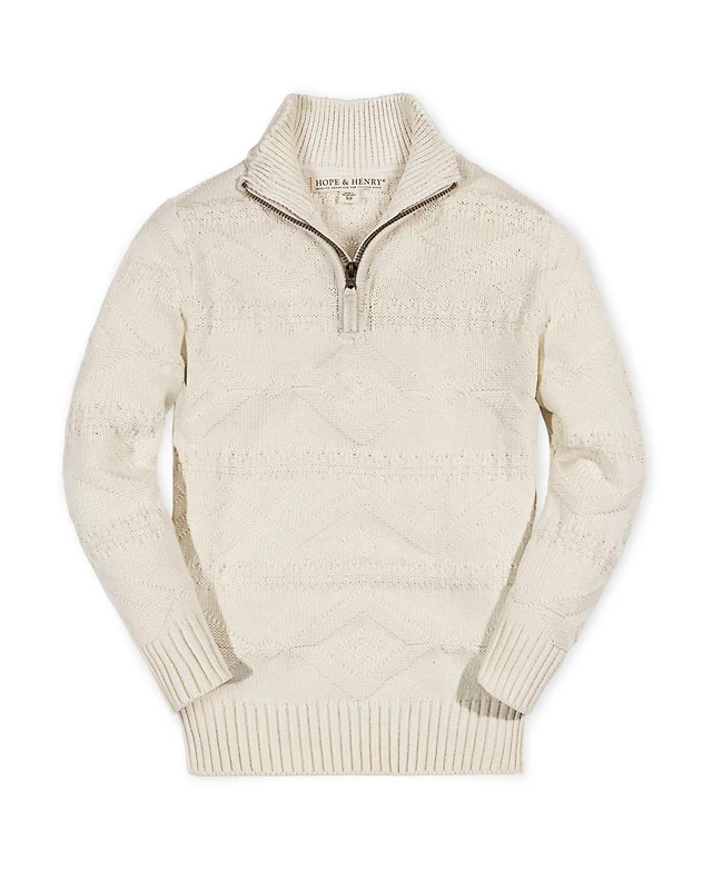 Hope & Henry Boys Organic Long Sleeve Full Zip Mock Neck Intarsia Sweater