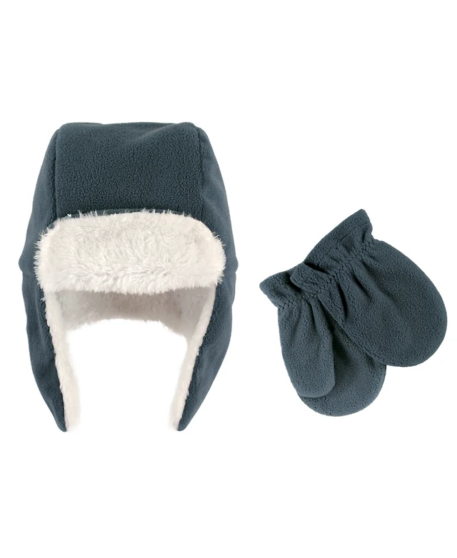 Hudson Baby Boys Soft Cotton Beanie and Anti-Scratch Hand Mitts