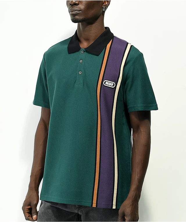 HUF Power Unit Green, Salmon, & White Stripe Polo Shirt
