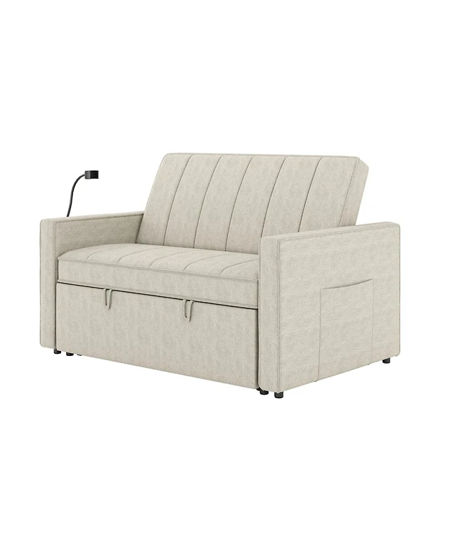 Duncan Modern Channel Tufted Upholstered Sleeper Sofa With Built-In Usb Port