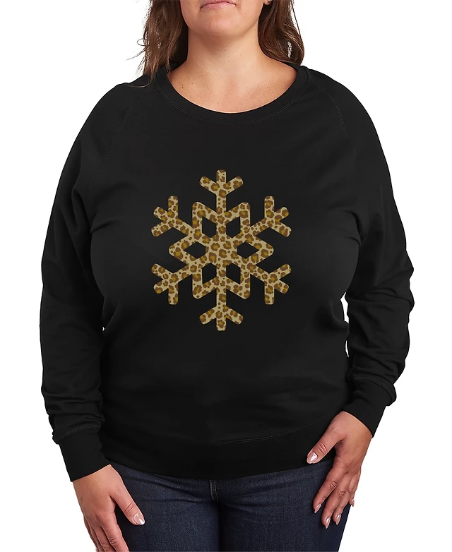 Hybrid Apparel Plus Trendy Leopard Snowflake Graphic Pullover Top