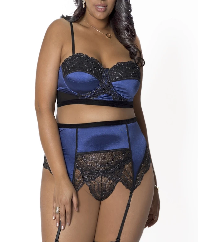 Ripley Plus Floral Lace Bralette and Garter Panty Set with Satin Belt 2pc Lingerie