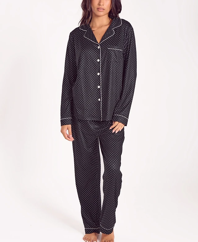 iCollection Women's Baby Waffle Stretch Knit Long-Sleeve Pajama Set