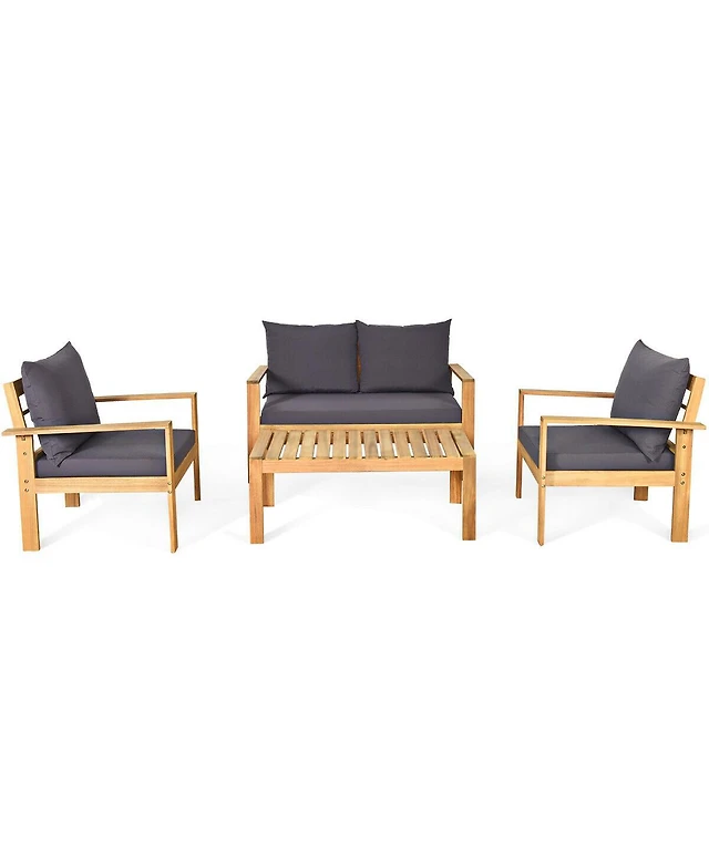 Sugift 4 Pieces Patio Solid Wood Furniture Set with Water Resistant Cushions