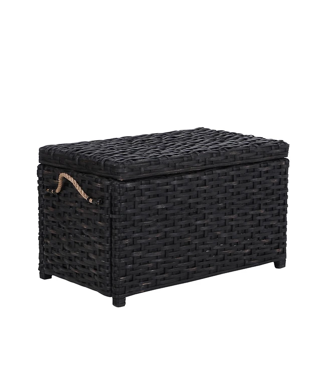 Jonathan Y Nino 31.5" Modern Minimalist Outdoor Faux Wicker Deck and Patio Storage Box, Brown