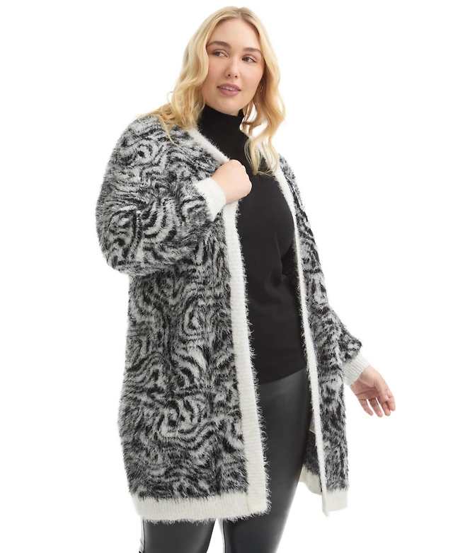 June + Vie Women's Plus Scallop-Trim Wrap Sweater