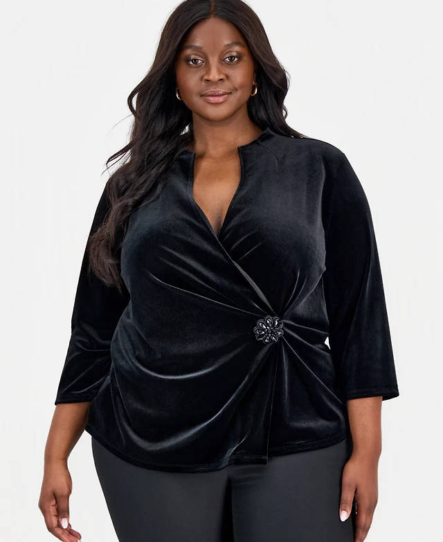 Kasper Plus Velvet Embellished Wrap Top