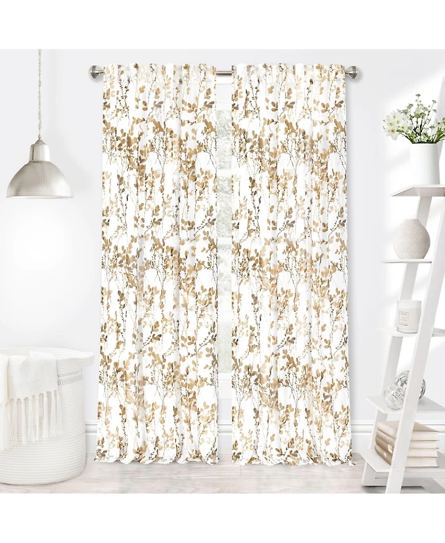 Kate Aurora 2 Pack Floral Leaf Embroidered Grommet Sheer Curtains - 38 in. W x 84 L, Linen