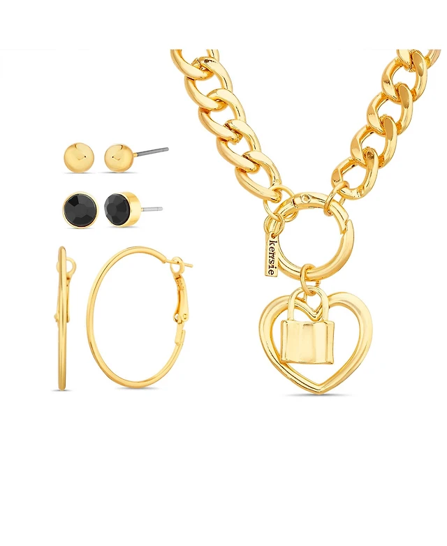 kensie Mixed Chain Rhinestone Star Heart and Snake Necklace Set
