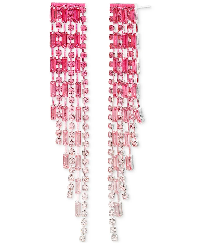 kensie Pink Ombre Rhinestone Chain Fringe Linear Earrings