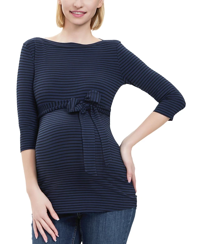 kimi + kai Maternity Striped Boat Neck Top