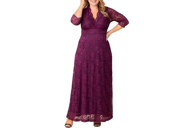 Kiyonna Women's Maria Lace A-Line Evening Gown with Pockets