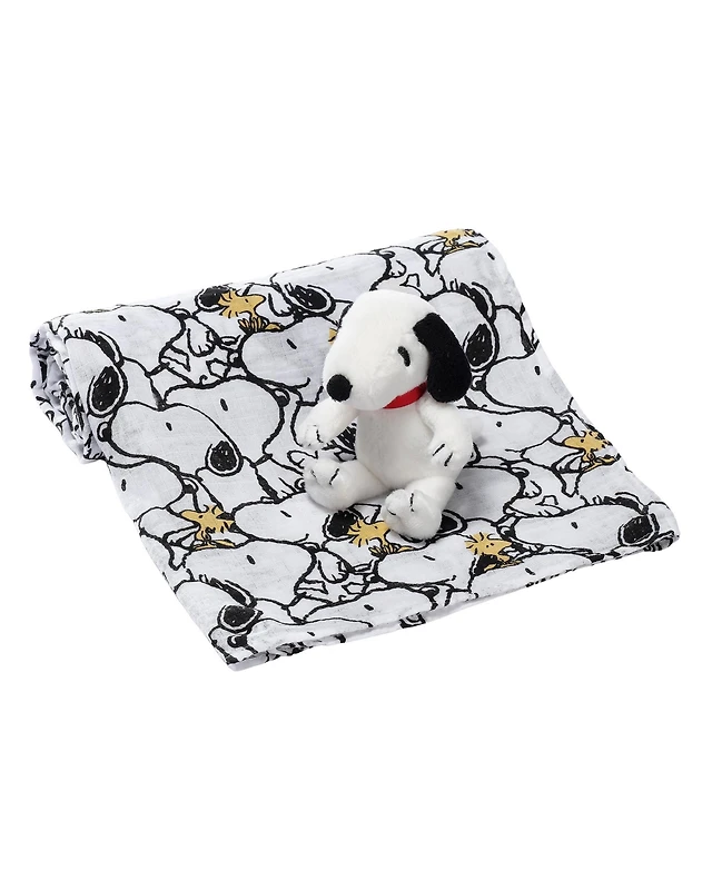 Lambs & Ivy Snoopy Muslin Swaddle Blanket & Mini Plush Newborn Baby Gift Set