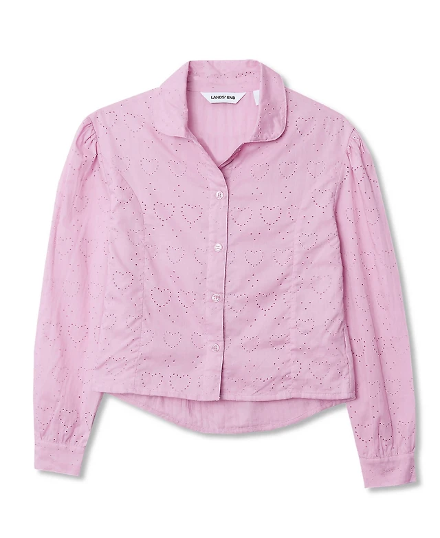 Lands' End Women's Boxy Cropped No Iron Pintuck Shirt