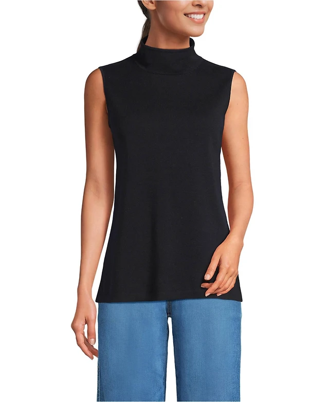Lands' End Women's Lightweight Jersey Long Sleeve Button Front Pintuck Top
