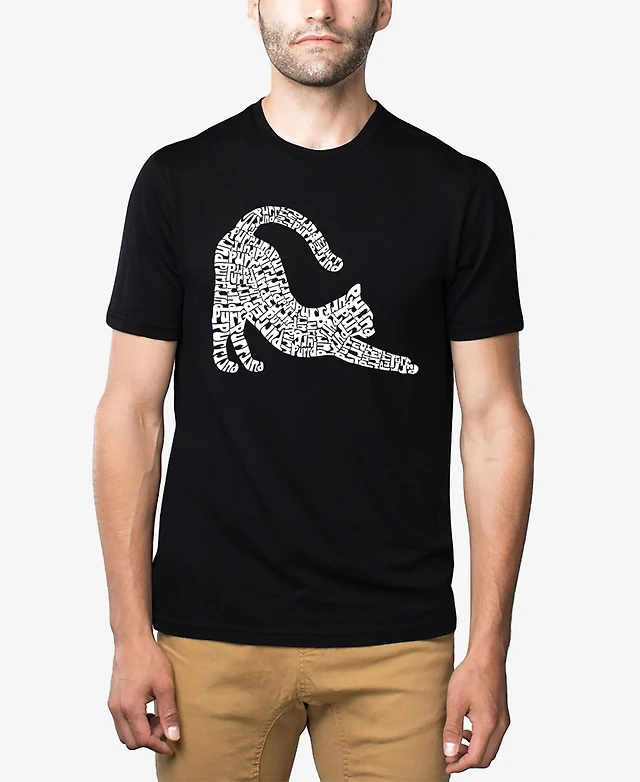La Pop Art Men's Stretching Cat Premium Blend Word T-Shirt