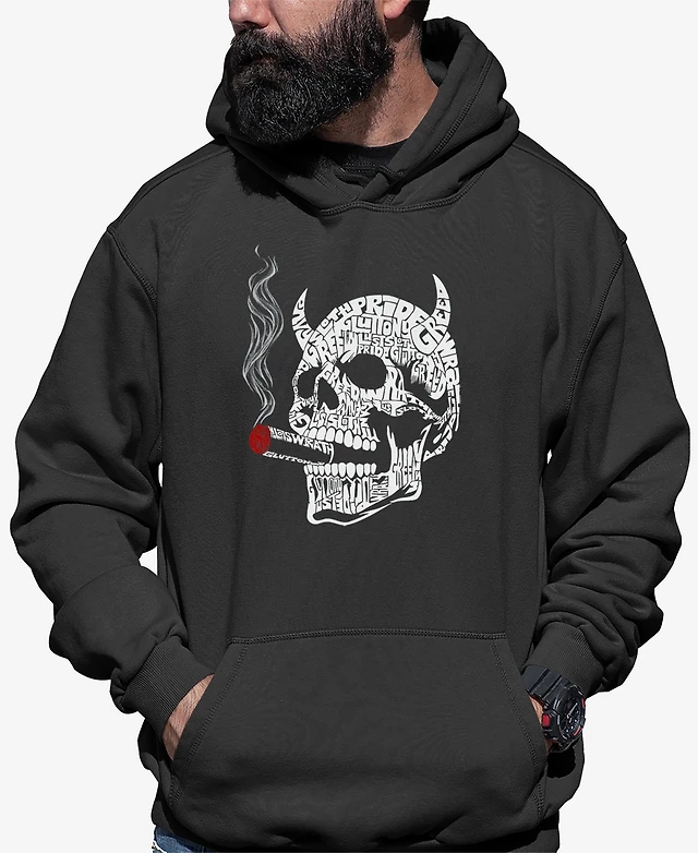 La Pop Art Men's 7 Deadly Sins Skull Word Hooded Sweatshirt