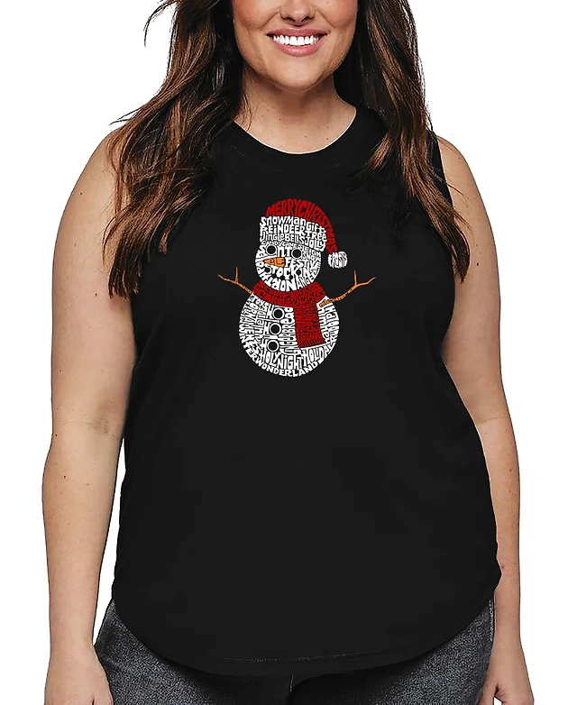 La Pop Art Plus Christmas Snowman Word Tank Top