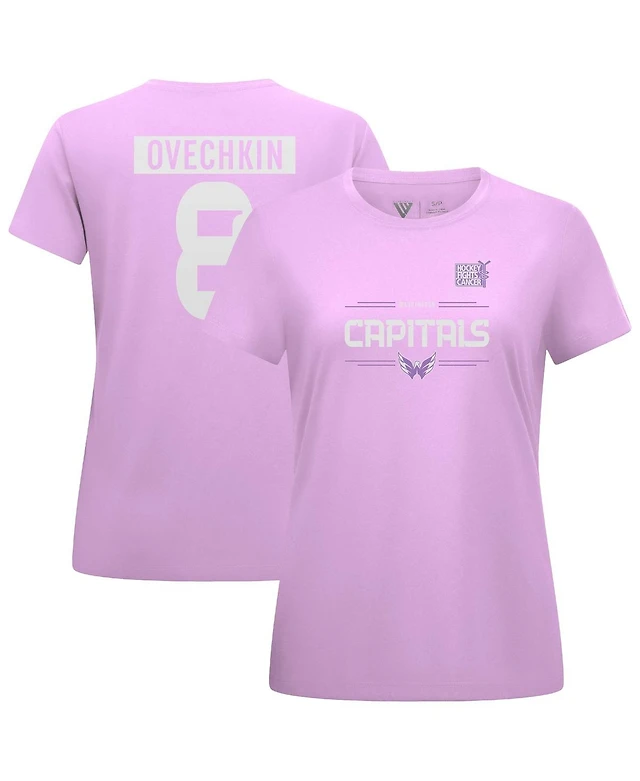 LevelWear Women's Alexander Ovechkin Lavender Washington Capitals Hockey Fights Cancer Anthem Name Number T-Shirt